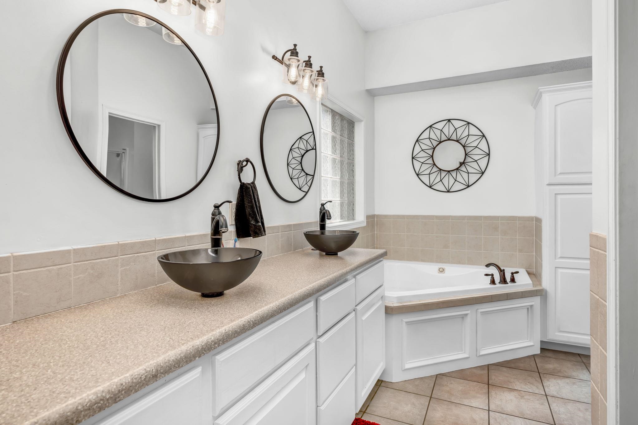 - Master Bedroom: Master Bdrm on Main Level, Split Bedroom Plan, Master Bedroom Bath, Sep. Tub/Shower/Mstr Bdrm, Two Sinks
