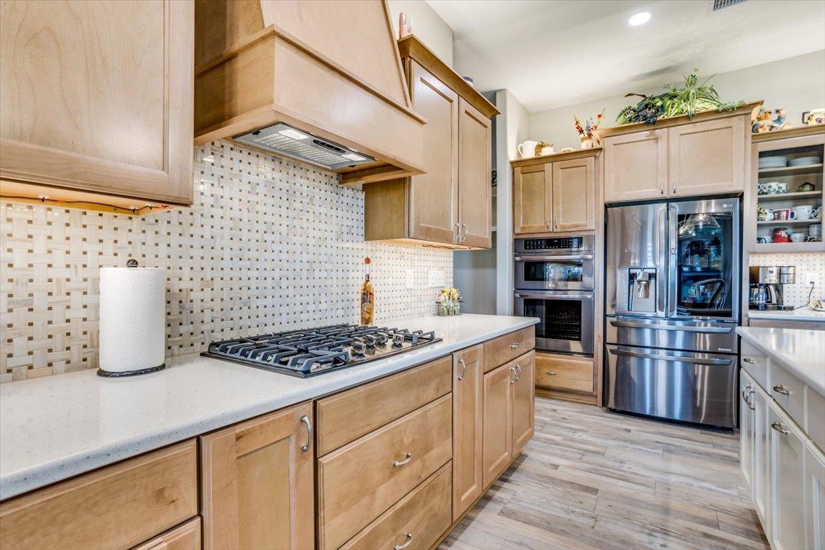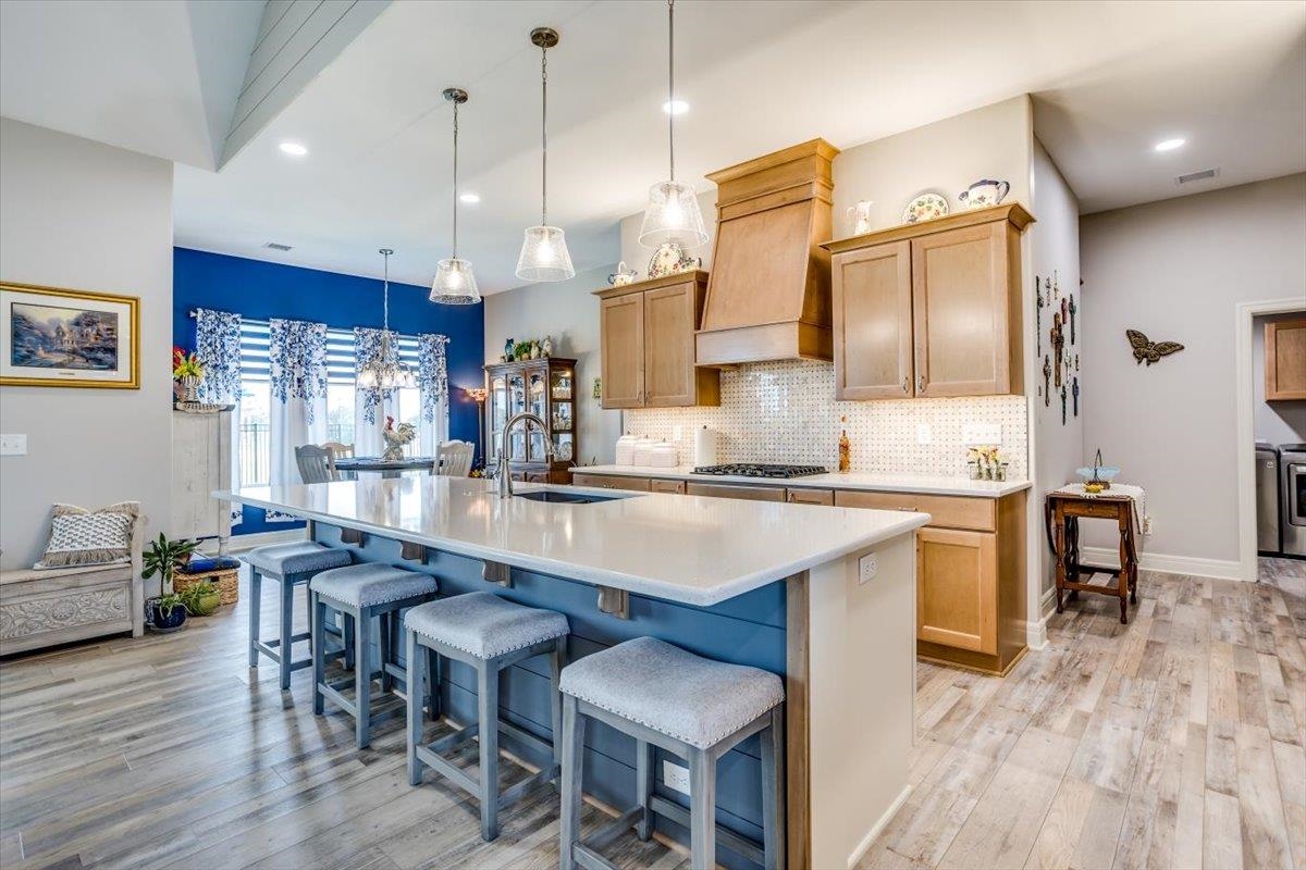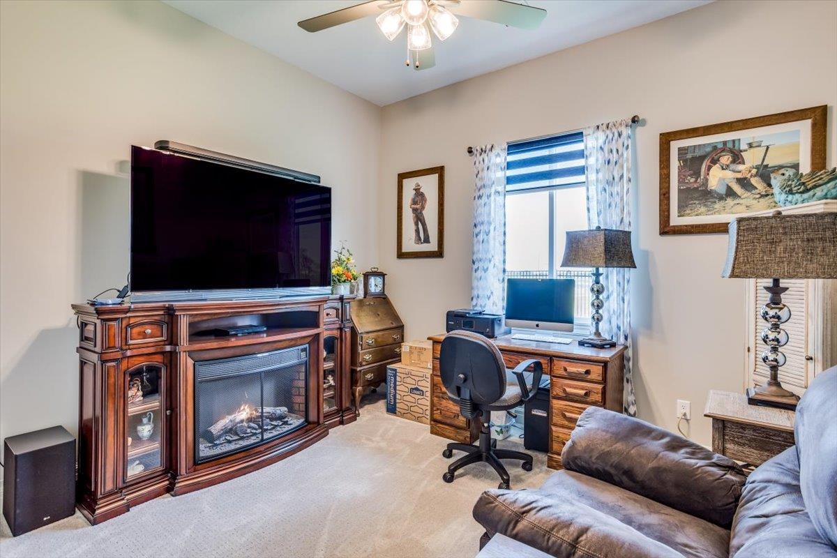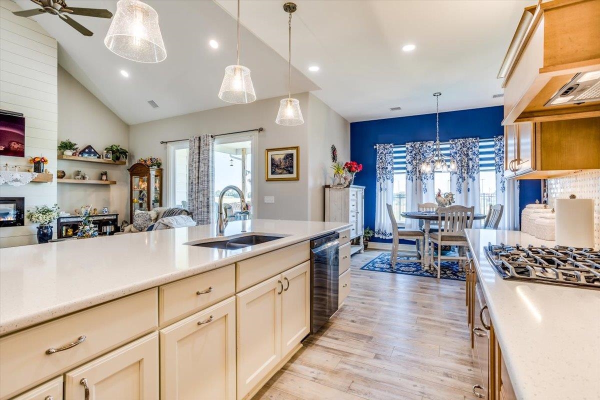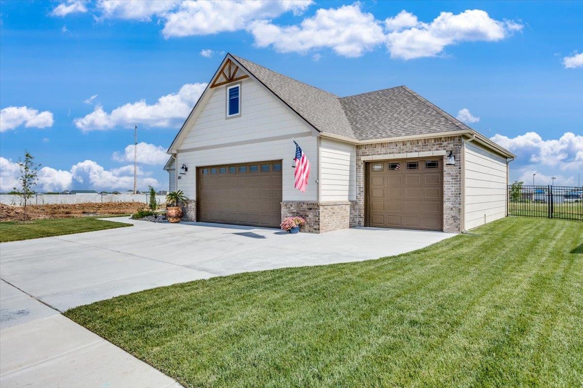 - Description: Perfect ZERO Entry Home with a 3 car tandem garage with parking for 4! Wide open Views, fenced yard and gorgeous landscaping with a SPRINKLER AND A WELL! Split bedroom plan with a private master and a door to your covered patio. Master Bath has double sinks, walk in shower and a private toilet room. HUGE Open Living Room with Fireplace, extra large slider to covered patio, Spacious Island and roomy dining area. Lots of storage areas and a drop zone off by the garage. Separate Laundry room and walk in Pantry doubles as a SAFE ROOM! 3rd bedroom and 3rd full bath in the Bonus Bedroom over the garage!! Feels and looks Brand new! Fence can be moved back 9-10 feet if a buyer would like a larger yard. City Gargen Coop is behind home by pool. Development plan on building a walking path area. Show all description