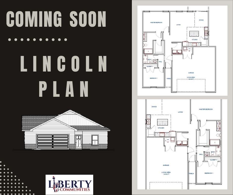 - Description: Welcome to the Lincoln floor plan by Liberty Communities! This 1 story home features 2 carpeted bedrooms, 2 bathrooms, a kitchen with granite counter tops and one pantry, LVP flooring, window blinds, ceiling fan in primary bedroom and living room, a concrete patio, and an oversized 2-car garage with a FEMA approved storm shelter. The following appliances are included: Stove/oven, microwave, refrigerator, dishwasher, washer and dryer. Irrigation, sod, tree and shrubs. *Home is under construction. Photo is a rendering of the home. Color of the home will be Alabaster with black trim and will not have extra storage on side of garage, but in back. Cabinet color will be White. *Interior photos coming soon! Show all description