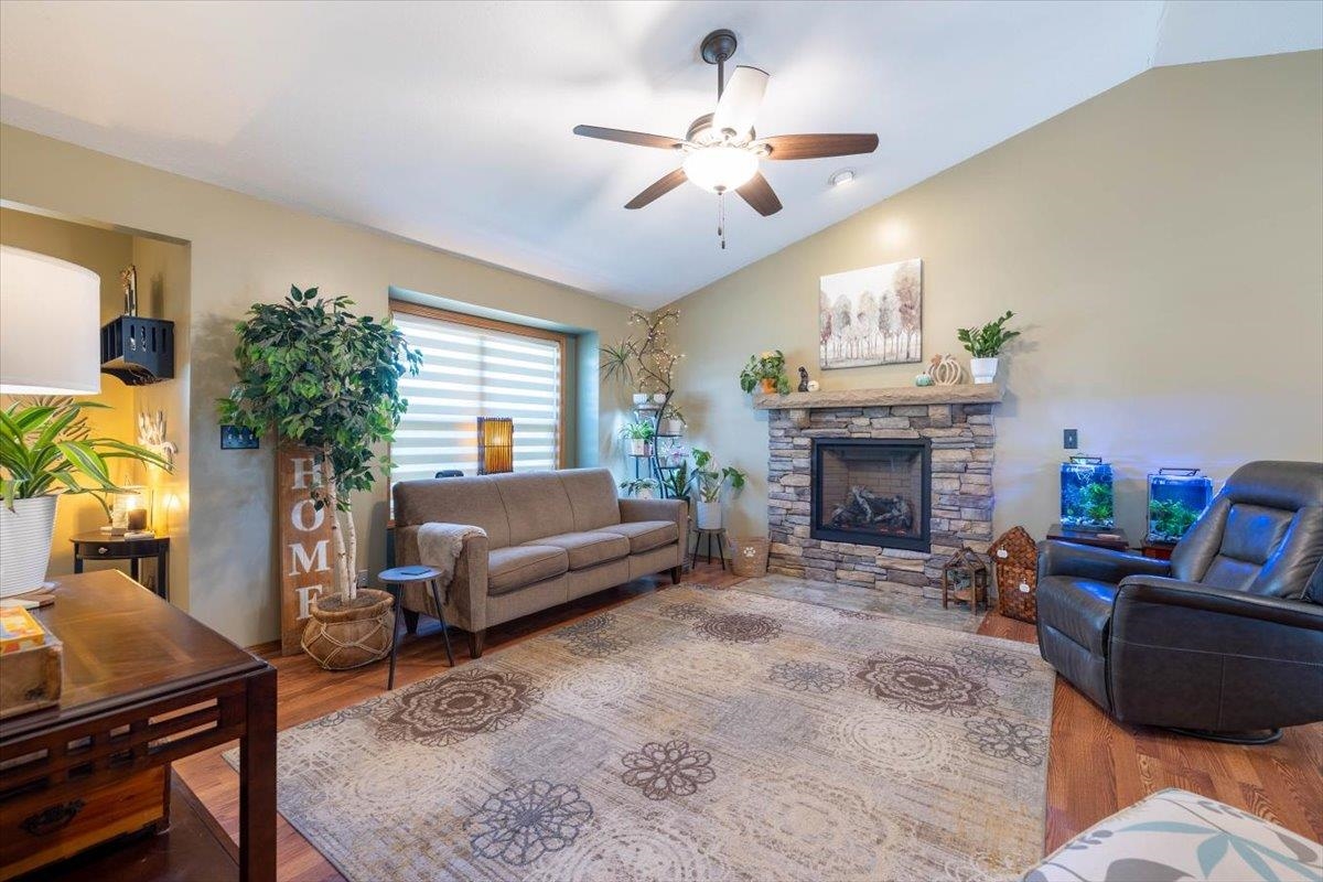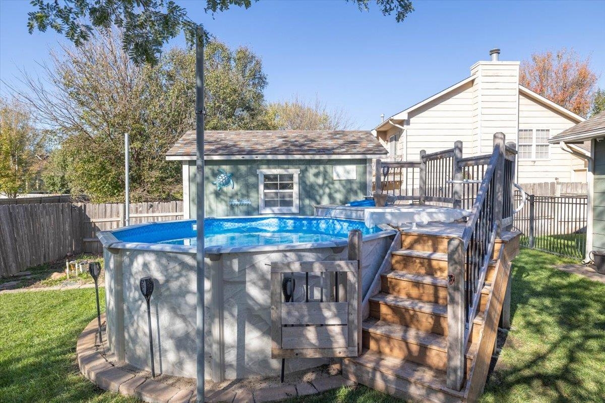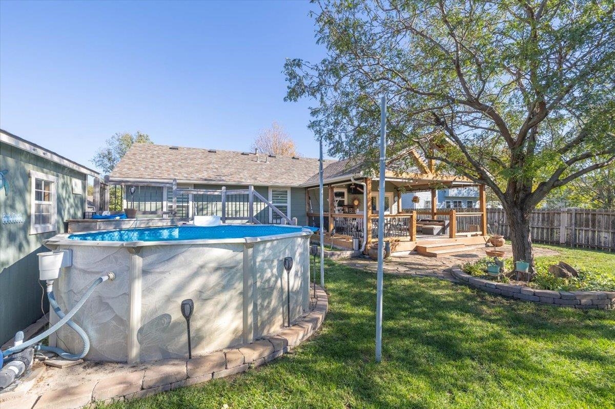 - Description: Small-Town Charm Meets Modern Comfort! This one-owner gem in Valley Center shines with 5 bedrooms, 3 bathrooms, and all the sparkle you’re looking for. The open-concept main floor features a cozy gas fireplace, perfect for chilly winter evenings, and a beautifully equipped kitchen with granite countertops and all appliances included. French doors lead to a stunning 16x20 covered deck complete with roll-down sunscreen shades, lighting, TV mount, and a natural wood ceiling. Heavy plastic curtains make this the ideal space to entertain all year long! An above-ground pool with a deck will entertain family and friends all summer long. Siding, exterior doors, and windows were all replaced in 2020. A well-maintained 10x12 shed with electricity for all of your equipment storage. The main floor also includes the primary suite with a private bath, two additional bedrooms, and a full guest bath. Downstairs, enjoy a spacious family room, two large bedrooms, another full bathroom, and a generous laundry room with plenty of storage. The garage is a showstopper too — finished with epoxy flooring, cabinets, heating and air! — making it a perfect man cave or entertainment space. Don’t miss this rare opportunity to own a beautifully maintained home full of warmth, style, and small-town charm! Show all description