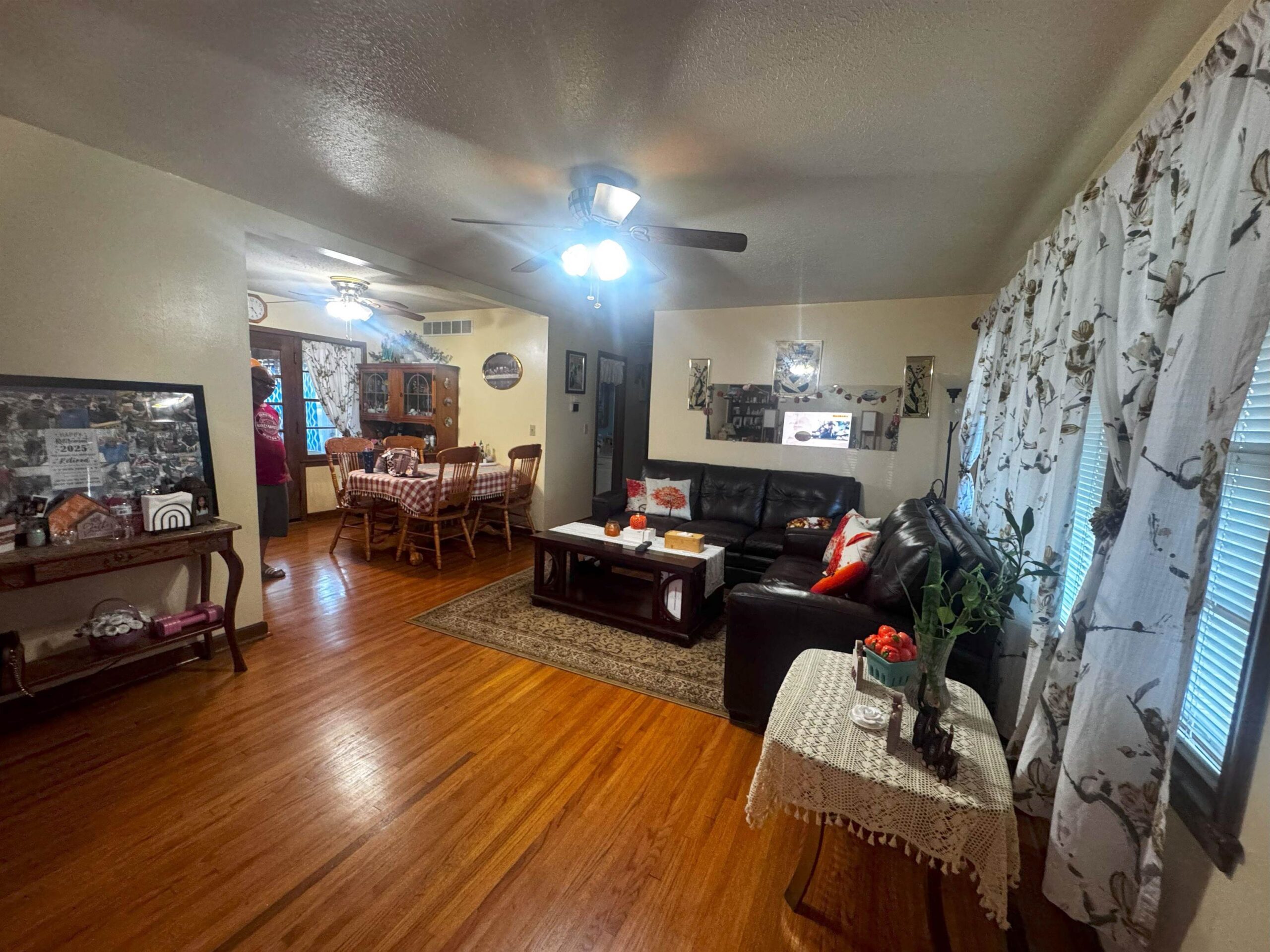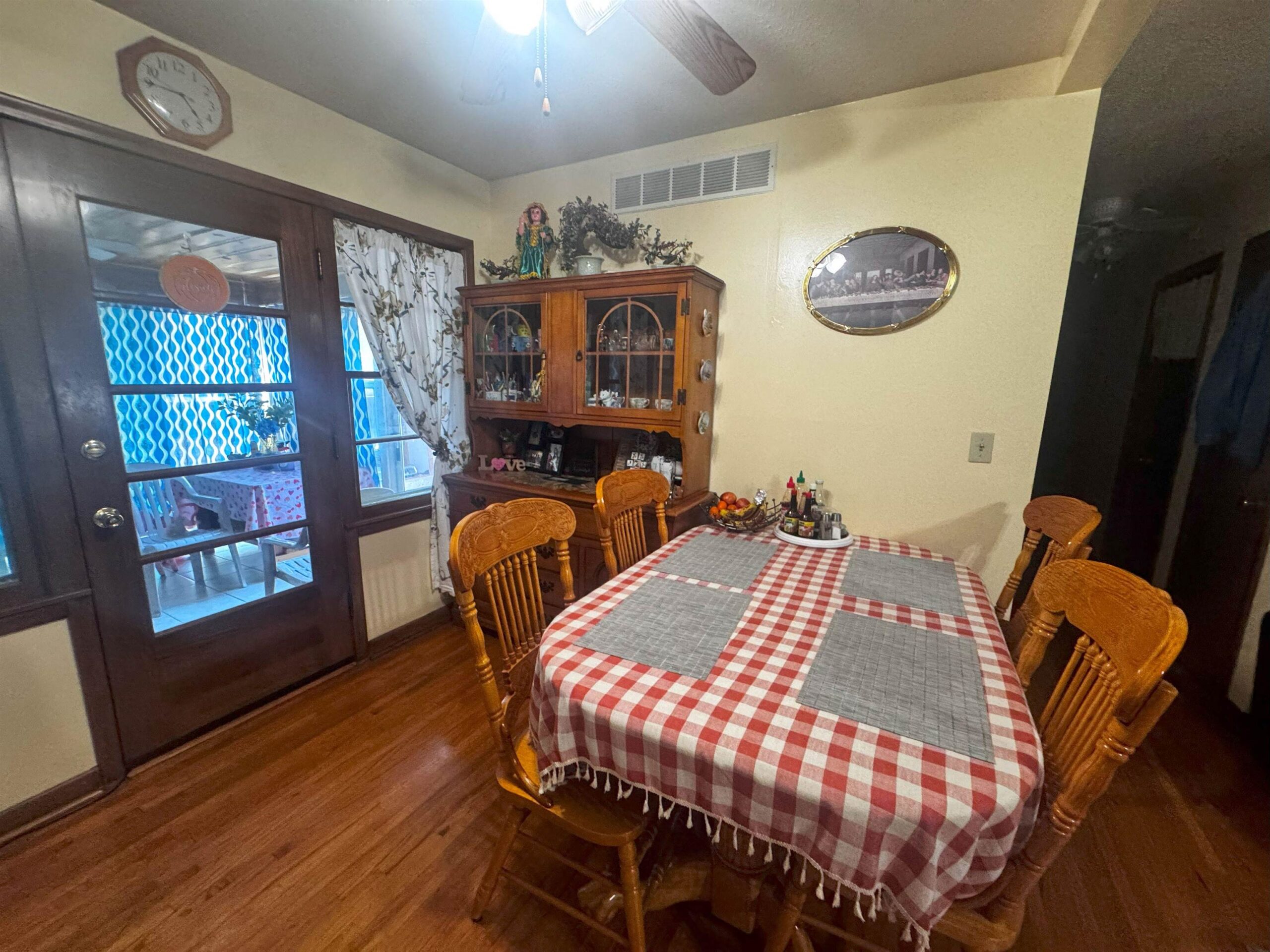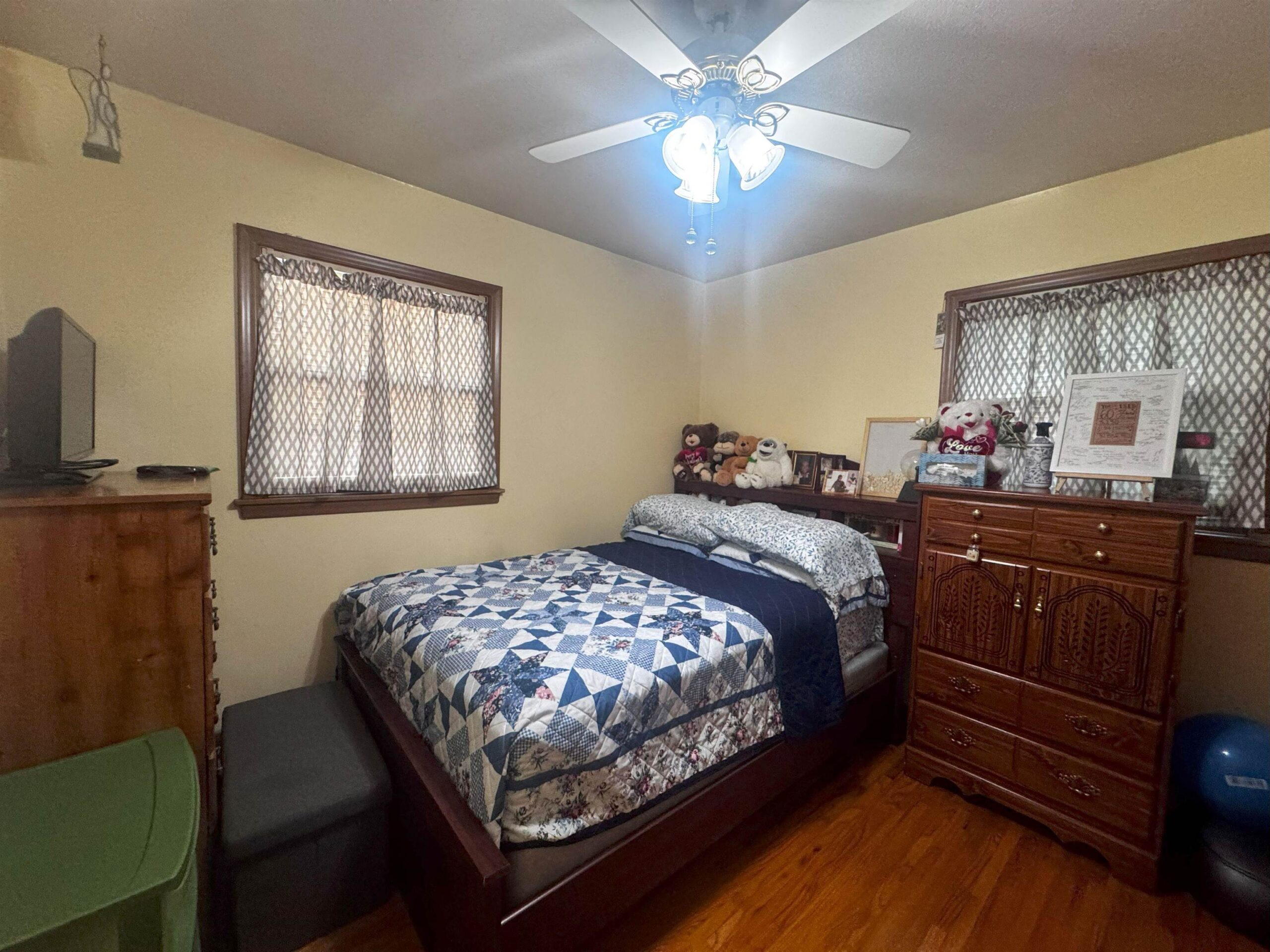 - Description: Discover this meticulously maintained all-brick, two-bedroom, one-bath home featuring a full basement. Upon entry, you will notice the elegant hardwood flooring throughout the main level. The galley kitchen has not been in use since 2017, as the seller utilizes an outdoor cooking station adjacent to the sunroom. Additionally, a custom-built pantry enhances the kitchen space and includes a cozy breakfast nook. The dining room offers convenient access from the living room, while a pleasant sunroom is located at the rear of the house. The fenced backyard provides ample space for gardening, as well as a storage building and patio. The basement is partially finished with quality wood paneling, creating a family room and a non-conforming bedroom. Extensive storage and laundry facilities are located on the opposite side of the basement and span the entire length of the property. Show all description