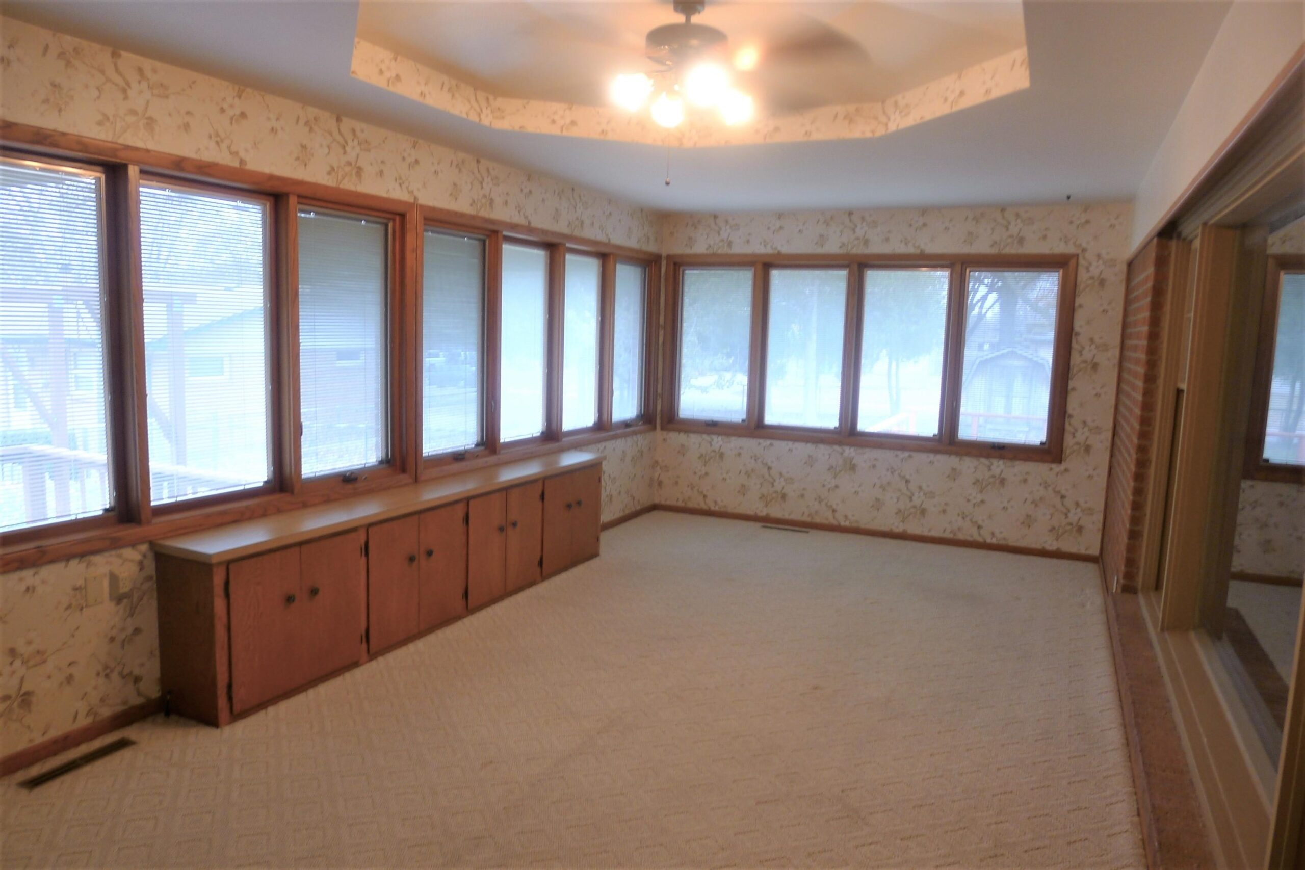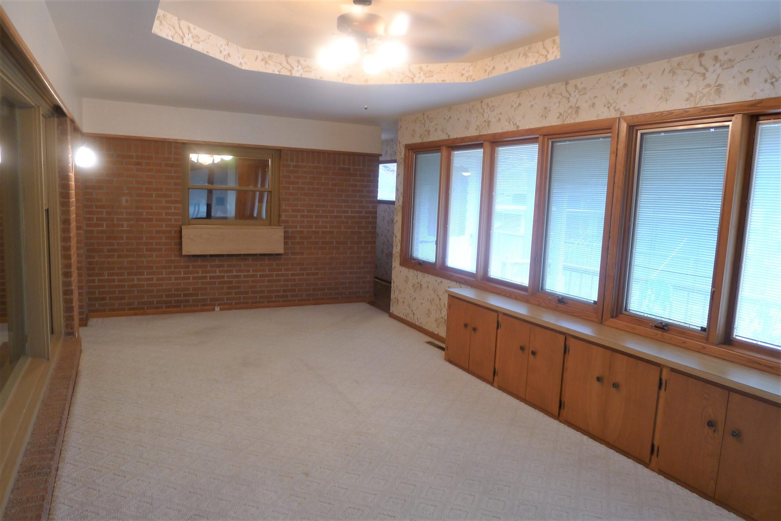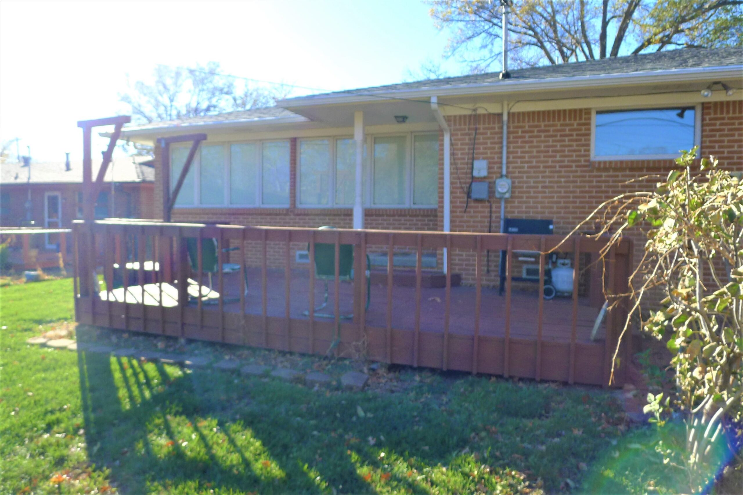 - Description: Lots of potential with this all-brick home available now in the established Westlink Village! Don't miss this spacious 3 bed 2 bath ranch style home with sunroom addition. A quiet tree lined street, lush yard with landscaping, cozy front porch with front courtyard area greet you as you arrive. Inside you'll find plenty of space with a living room connected to the sunroom. Sunroom is surrounded with Pella windows with integrated blinds that invites the warm sunlight to fill the space. Cozy up in the hearth room with a wood burning fireplace and a separate/formal dining room with built in china cabinet connect to the one-of-a-kind kitchen. The kitchen has timeless custom oak cabinets, pantry, classic retro range/oven with hidden range elements and hood and a reach thru window to the sunroom perfect entertaining. They don't build them like this anymore! The finished basement has a ton of potential with a family room area, rec/game room area and home office or workout room. Entertain on the back wood deck with integrated patio swing attachment and brick patio with a cool brick design. The shed is in good shape and provides extra storage for lawn equipment. The garage is a handyman's dream. It has an extra heater with water faucet and fold-down workshop table with lots of cabinets for storage. This home has a ton of potential, don't miss out! Show all description