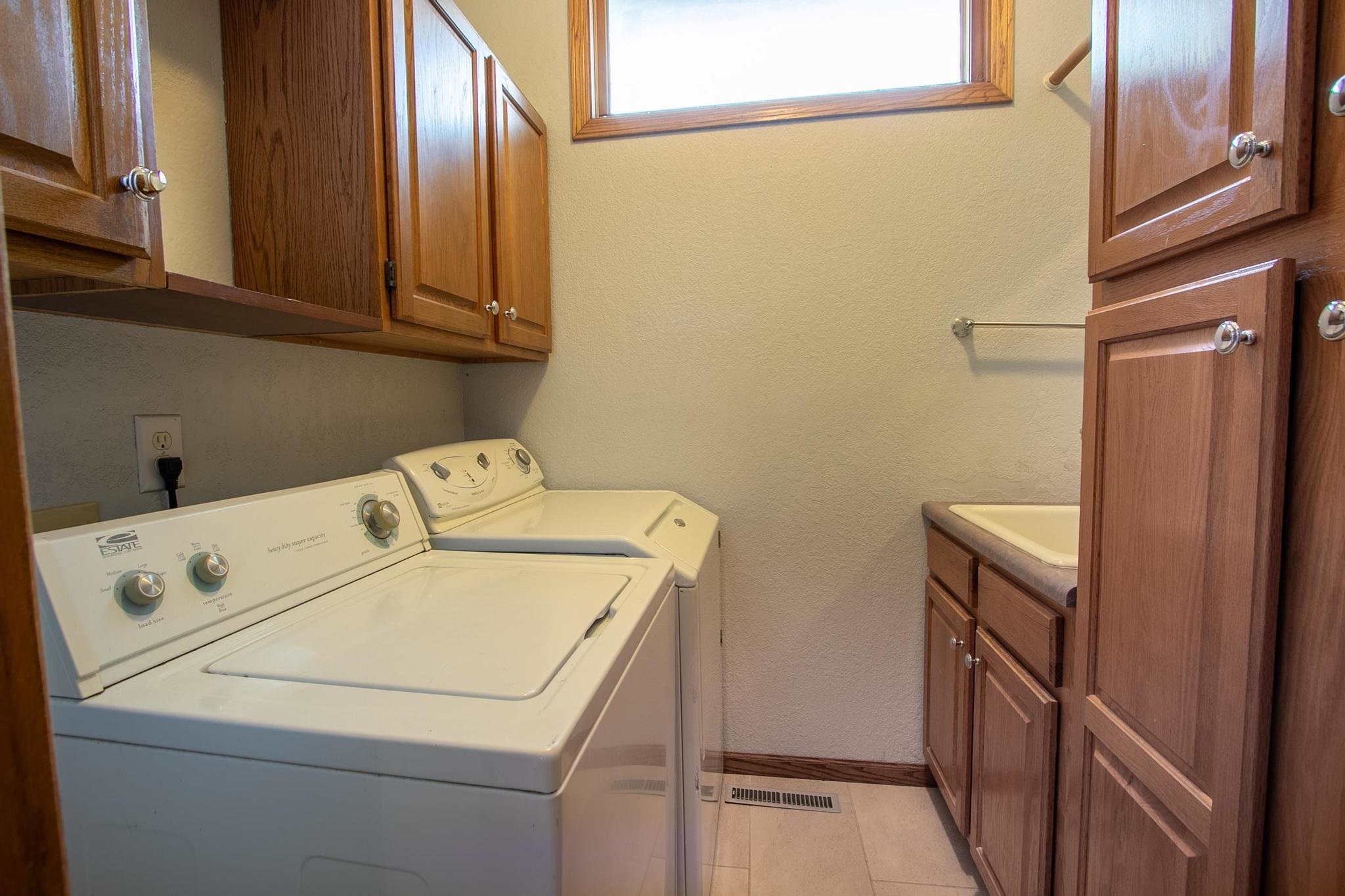 - Description: Welcome to this spacious 4-bed, 3-bath ranch with vaulted ceilings, cozy fireplace and main floor laundry. The primary suite features jetted tub, dual sinks, and walk-in closet. The finished basement offers a family room, full bath and bedroom. Relax on the oversized deck, enjoy the fenced yard with irrigation well. Prime west-side location, this one checks all the boxes! Show all description