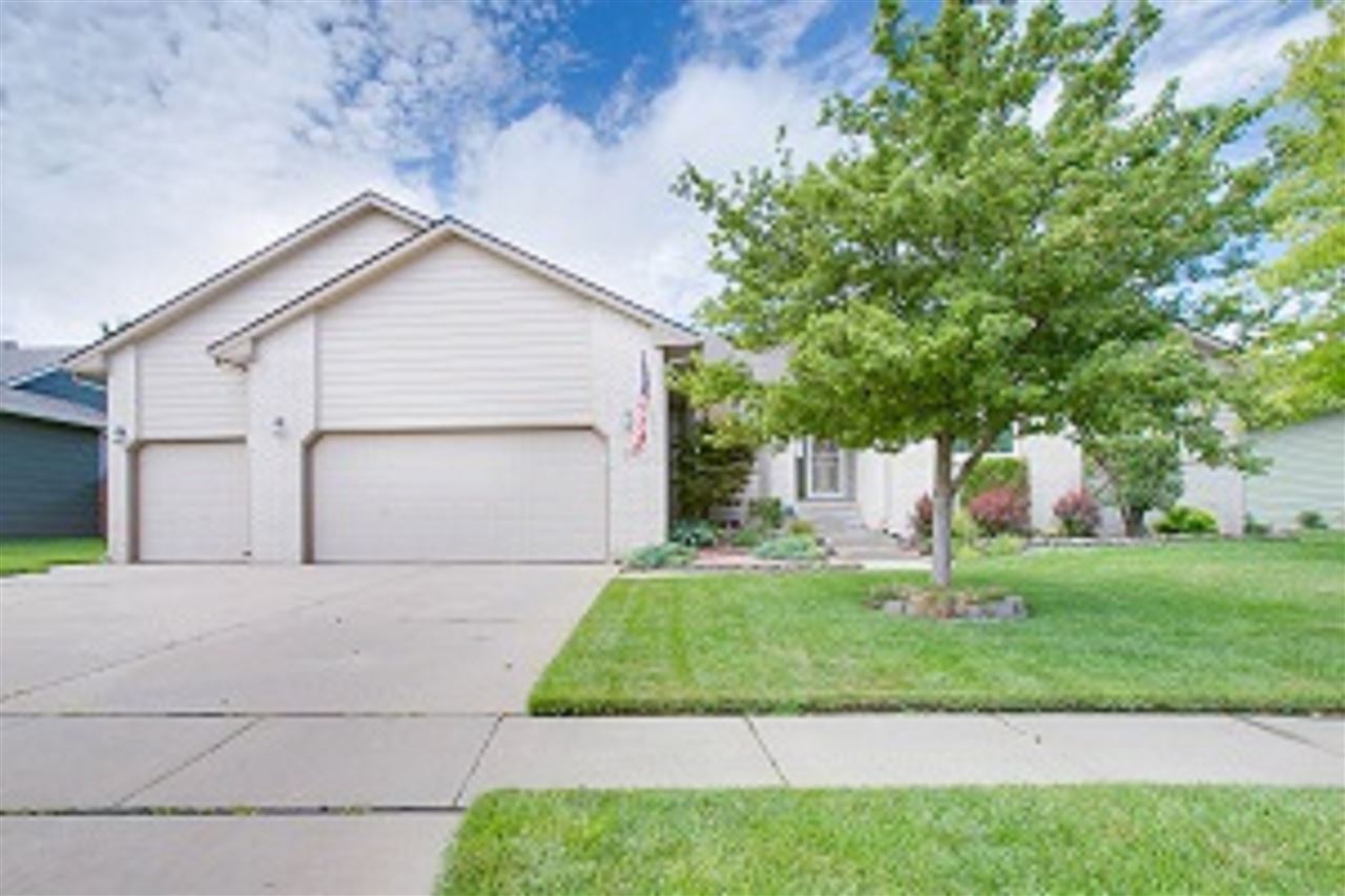 - Description: Extraordinary home in Goddard school district! No Specials left to pay! 3 bedrooms on main level. New roof with wind resistant shingles in Nov 2019. Many upgrades throughout home including solid oak wood flooring on main level common areas , quartz countertops in kitchen. Black stainless steel appliances. Double sided fireplace shared by kitchen and living room. Master bath recently beautifully remodeled with modern glass shower & solid surfaces. Exquisite covered deck off kitchen with ceiling fan. Another area of deck with Sunsetter Awning. Pella French doors to decks. Spacious guest bedrm/bath in lower level and large family room. Many more features make this the perfect home for you! Show all description