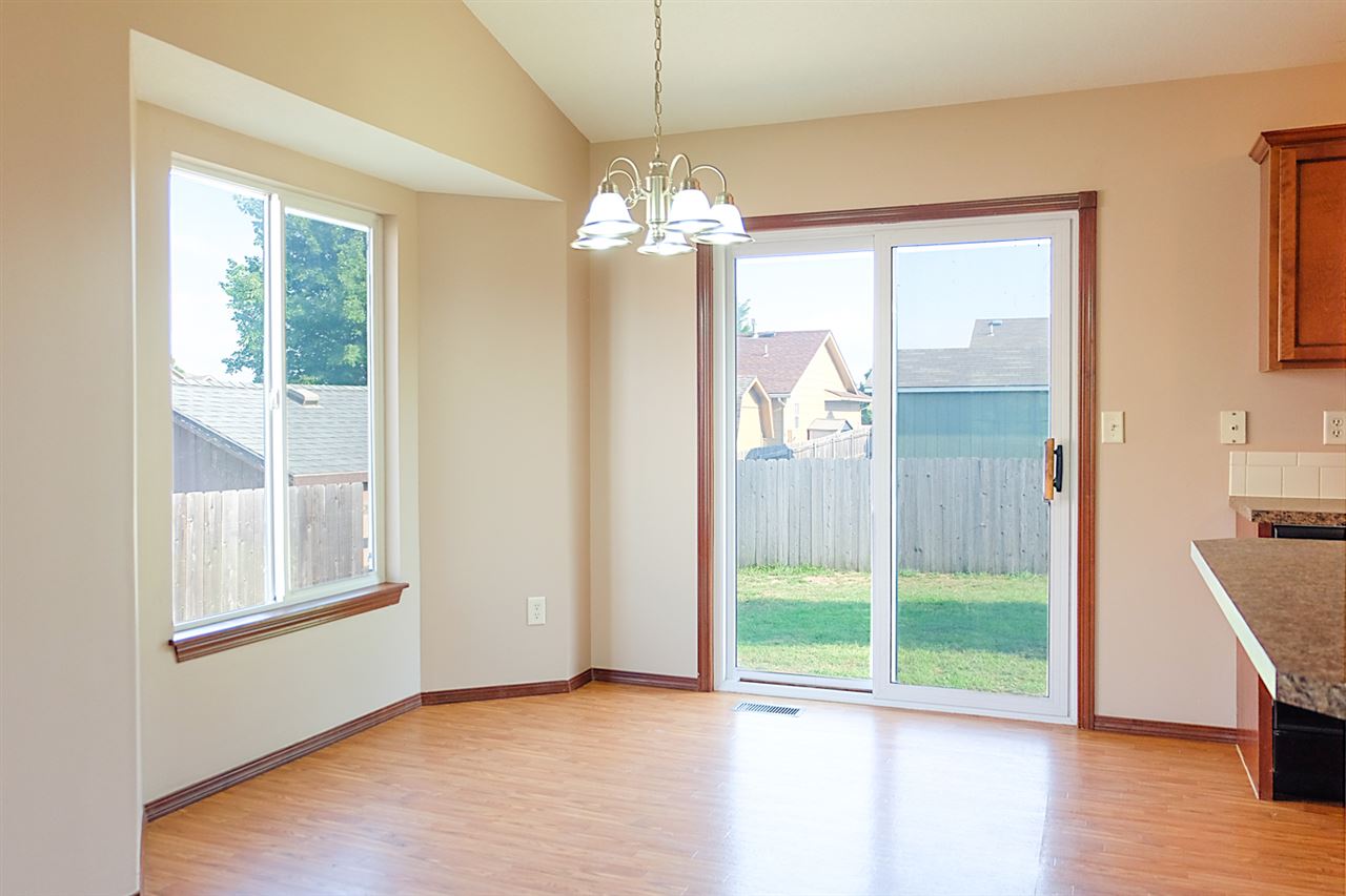 - Description: If you've been looking for a move-in ready home in the Haysville school district, here it is! Vaulted ceilings in living room and kitchen/dining area. Bay window in dining. Two bedrooms and two bathrooms on the main level. BRAND NEW CARPET AND INTERIOR PAINT throughout the main level. Full basement is framed and ready for you to finish. Large family room, two additional bathrooms, and a third bathroom. The backyard is mostly privacy fenced and has a patio. The only thing this home is missing is YOU. Show all description