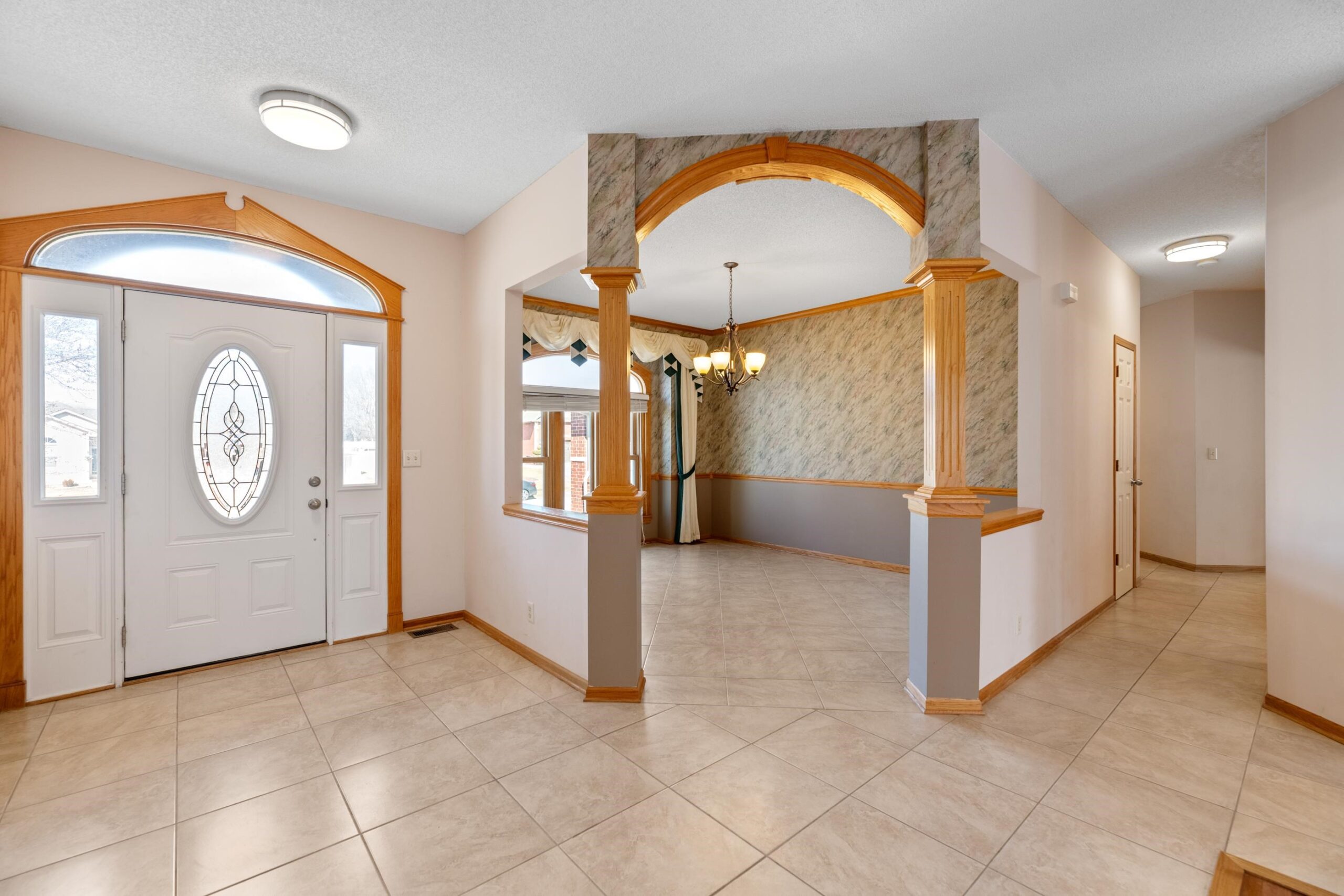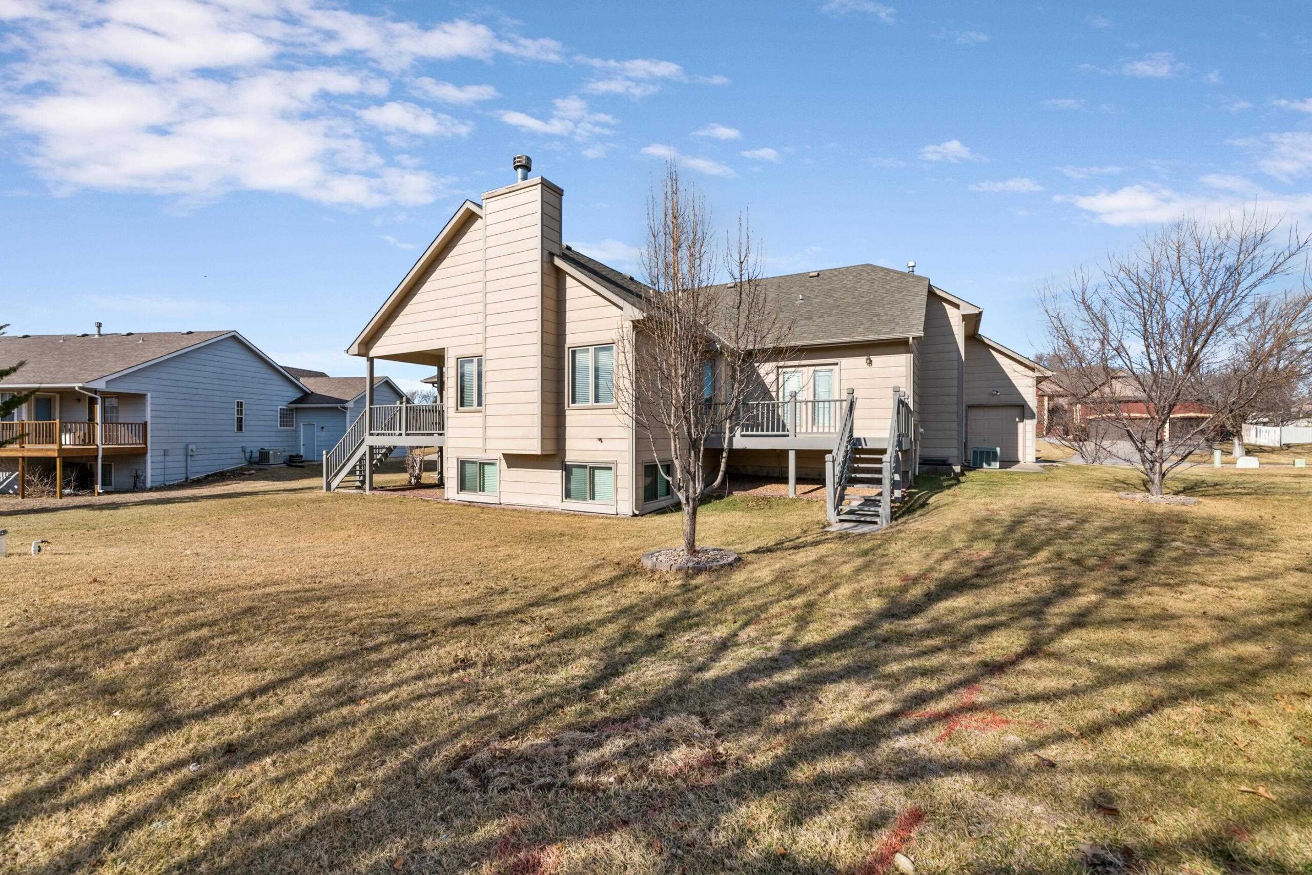 - Description: Welcome to this well-maintained, custom-built home by the original owner. "$18,000.00 Price deduction" this 5 bedrooms, 3 and 1/2 bathrooms home, offers a spacious interior with ample room. The layout includes three bedrooms and two bathrooms on the main floor, along with a formal dining room, large living room and a heart room with a gas fireplace. The master suite features a fireplace between the whirlpool and bedroom, and a wet bar . The kitchen includes bar seating and space for a dining table.Tiles and hardwood flooring are on the main level. The basement has view out windows with a huge rec room and family room . Also two additional bedrooms and a full bath, finished with luxury vinyl flooring. Auto attic fan above oversized three- car garages with back overhead doors . Two decks provide relaxation space. Nice landscaping, well water for inground irrigation systems. Located in a quiet neighborhood with easy access to E.Kellogg Ave " US 54", this home blends comfort and convenience. Come out and take a look. You won't be disappointed. Show all description