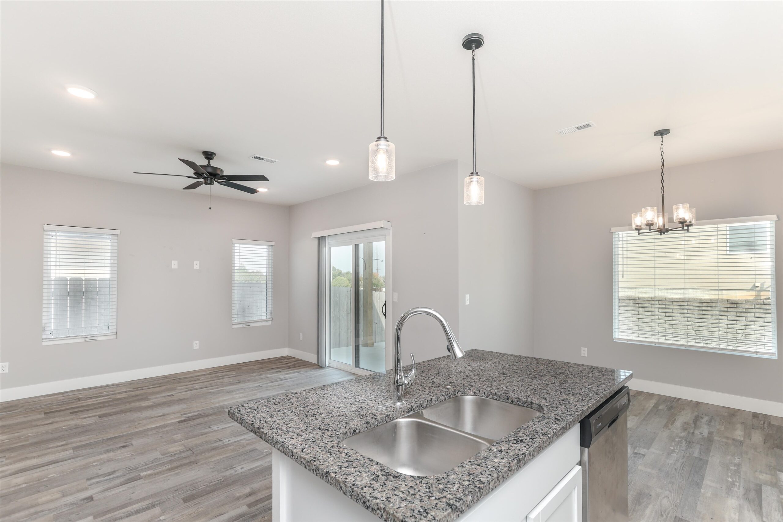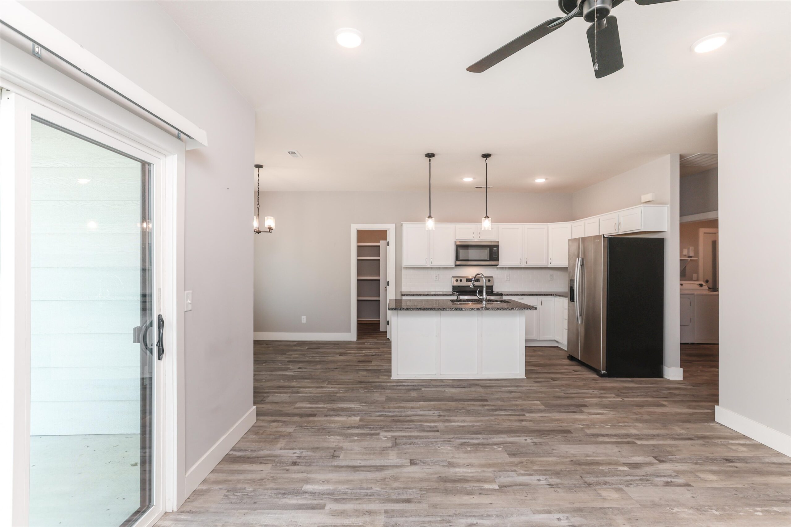 - Description: This is the perfect home for first time homebuyers or anyone looking to downsize to easy maintenance living. Located just South of Kellogg, it is an easy drive to anywhere in or out of town! This 3 bedroom, 2 bath home boasts an oversized garage that could house a work area, extra storage or anything else you need extra space for. The living, dining and kitchen areas feature an open floor plan for entertainment or just being close to your loved ones. You will enjoy luxury vinyl flooring and granite countertops along with double sinks in the master bathroom. The covered patio has amazing large steps to the yard, and it is a great place to relax at home! All of the appliances stay along with the washer and dryer in the separate laundry room between the hallway and garage. The best part is that it is move in ready, so book your showing soon! Show all description