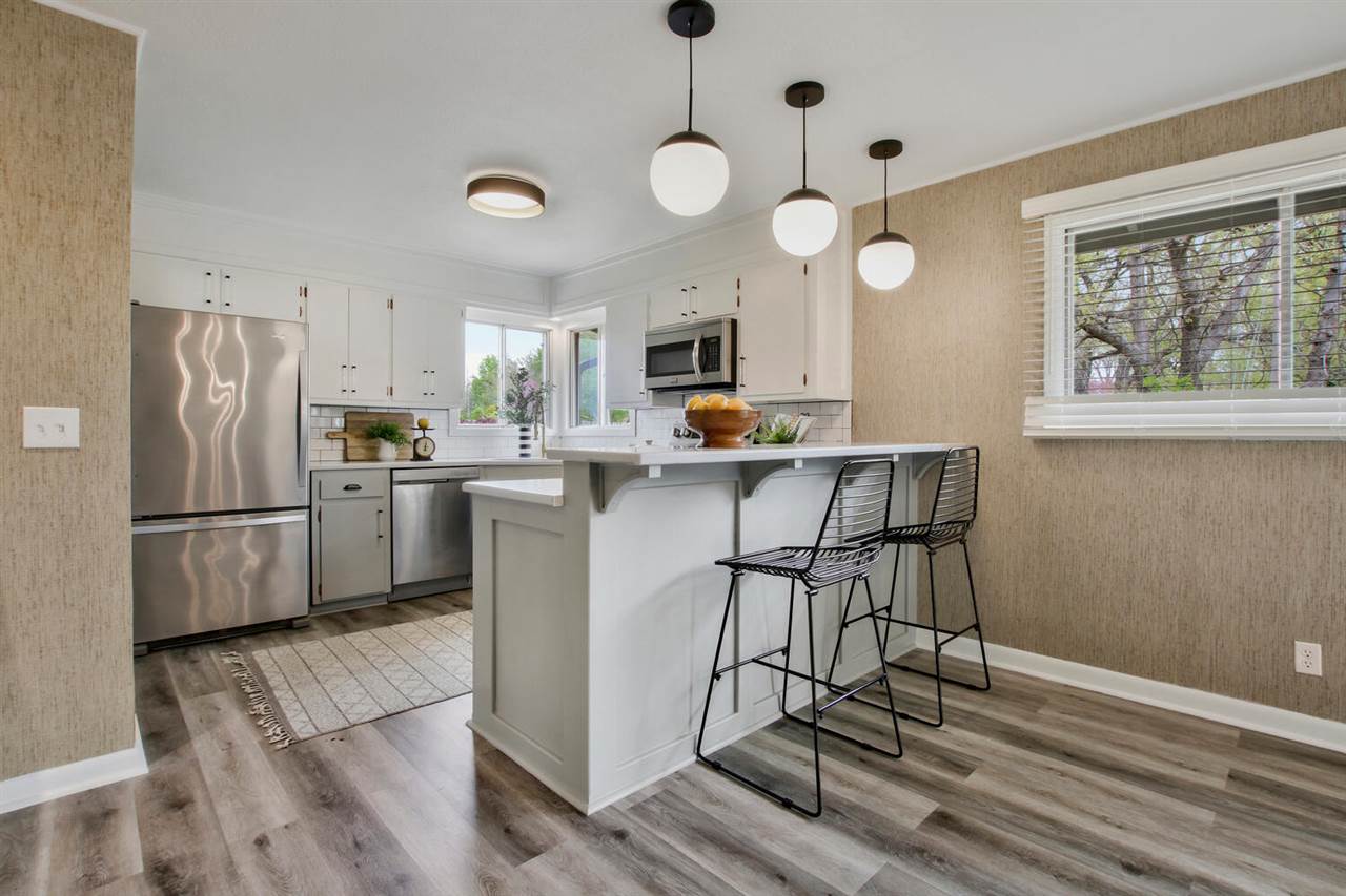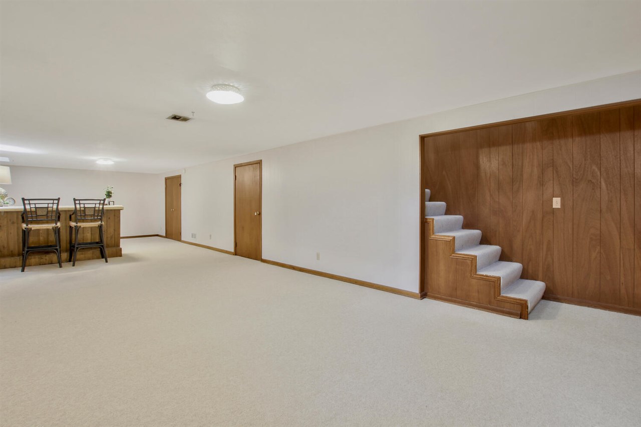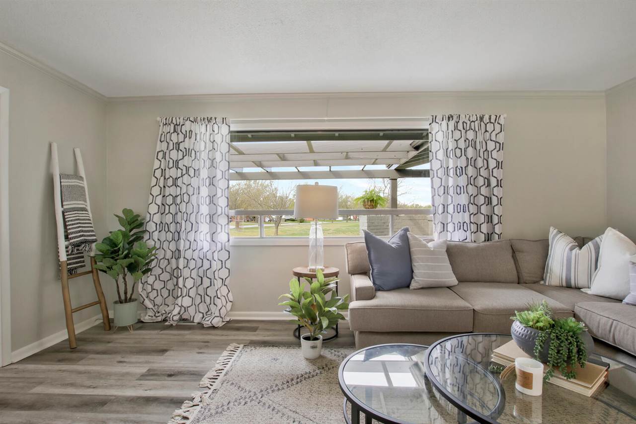 - Description: THIS LISTING INCLUDES TWO PARCELS! The house sits on a large corner parcel which is approximately 118 feet by 118 feet but the sale will also include the lot to the NORTH OF THE FENCE which has another 40 feet of street access. What will you do with this extra space? Build a garage/shop, a pool, have a community garden? Why not do all three? At 40 feet by 120 feet, you certainly could! As for the house, there is nothing to sneeze at here! Almost 1600 square feet of remodeled brilliance with an open floor plan kitchen, dining room, living room area, all in the latest style. Kitchen has classy Corian countertops plus a dry bar with a beverage fridge included. Right off the kitchen is the main floor laundry with a half bath. So very convenient. There are windows all through this space so natural light floods the main living areas no matter what time of day it is. Enjoy the convenience of Luxury Vinyl Plank flooring throughout the main living areas as well. Scratch and water resistant, you'll never dream of having anything else. This house is rare in that it has FOUR main floor bedrooms. In addition to the full hall bath and half bath in the laundry, the master suite also has a 3/4 bath with fancy-dancy octagon shaped tiles for the shower and for the backsplash, countertop to ceiling, behind the sink. There is additional living space in the finished basement with an extra large family/rec room area. The backyard features a patio off the dining room with a six foot privacy fence all around with metal gates for easy access on both sides of the house. Now don't forget to go look at the extra space provided by that lot on the north side of the north fence. The property line extends from this fence to the neighbor's fence. What will YOU use it for? Talk about forgetting, I almost forgot to mention this home is directly across the street from Redbarn Park with room for batting practice and soccer scrimmages as well as a playground. Having that open area also leaves room for spectacular views of beautiful Kansas sunsets from the comfort of your front porch. Now aren't you glad I remembered to mention that? Blinds transfer on sale. Curtains do not. Show all description