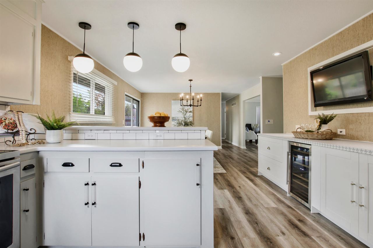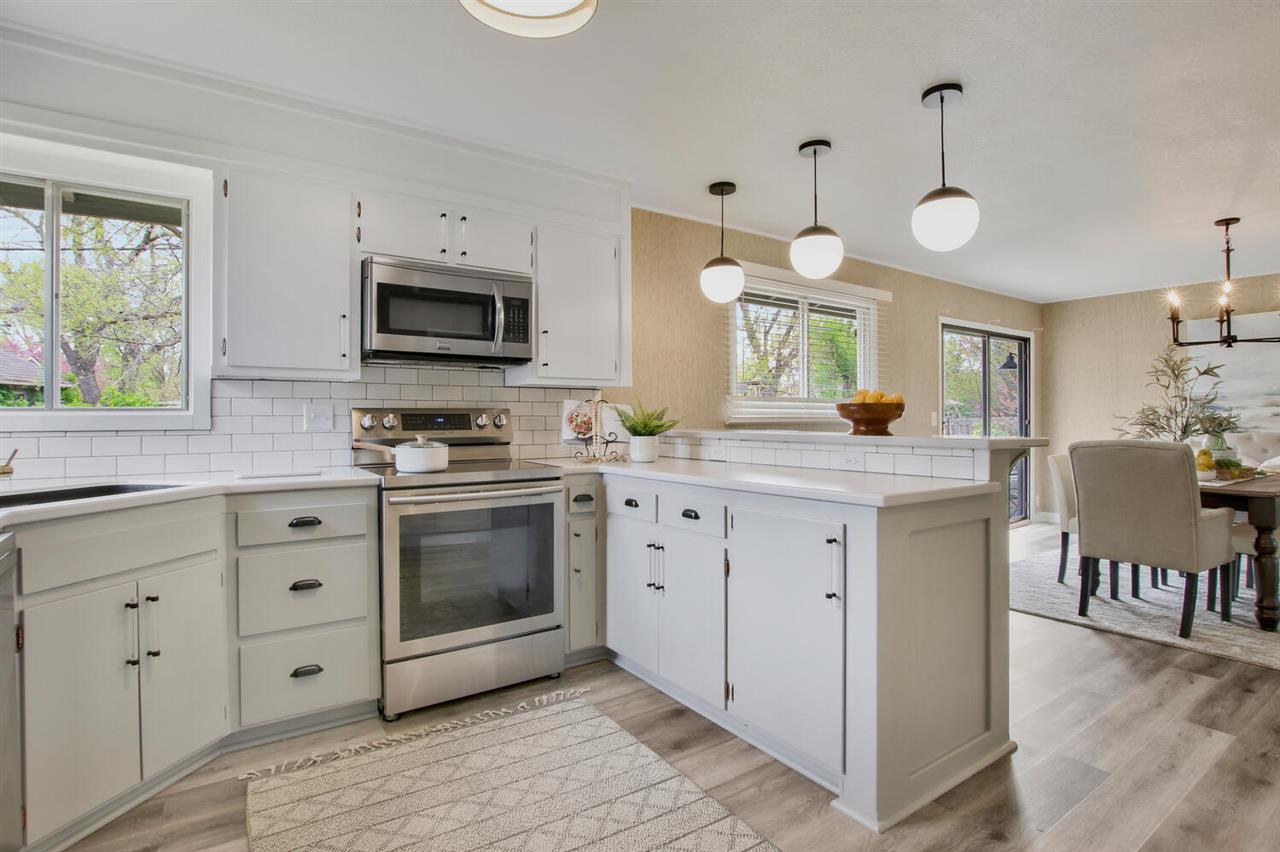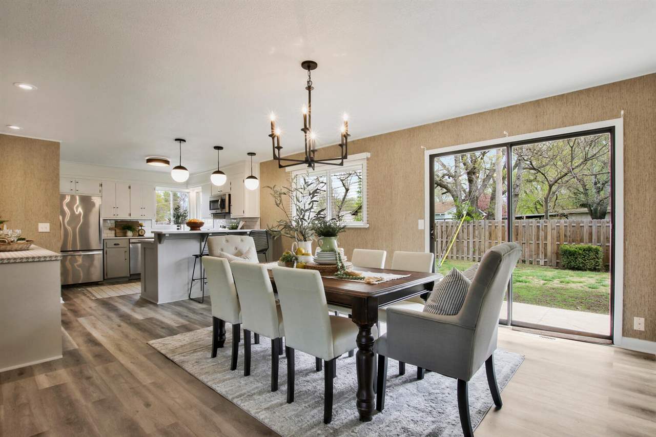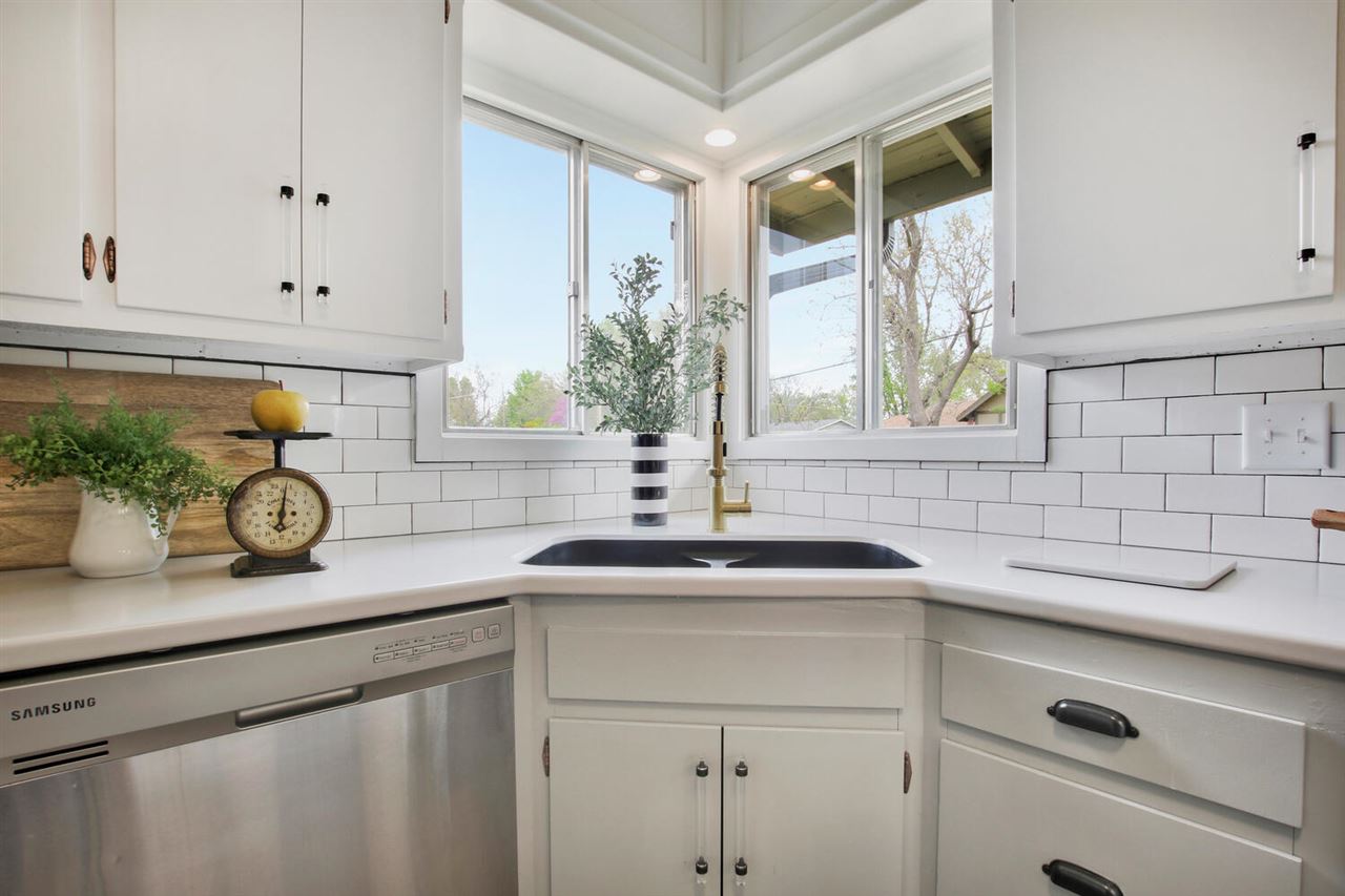 - Description: THIS LISTING INCLUDES TWO PARCELS! The house sits on a large corner parcel which is approximately 118 feet by 118 feet but the sale will also include the lot to the NORTH OF THE FENCE which has another 40 feet of street access. What will you do with this extra space? Build a garage/shop, a pool, have a community garden? Why not do all three? At 40 feet by 120 feet, you certainly could! As for the house, there is nothing to sneeze at here! Almost 1600 square feet of remodeled brilliance with an open floor plan kitchen, dining room, living room area, all in the latest style. Kitchen has classy Corian countertops plus a dry bar with a beverage fridge included. Right off the kitchen is the main floor laundry with a half bath. So very convenient. There are windows all through this space so natural light floods the main living areas no matter what time of day it is. Enjoy the convenience of Luxury Vinyl Plank flooring throughout the main living areas as well. Scratch and water resistant, you'll never dream of having anything else. This house is rare in that it has FOUR main floor bedrooms. In addition to the full hall bath and half bath in the laundry, the master suite also has a 3/4 bath with fancy-dancy octagon shaped tiles for the shower and for the backsplash, countertop to ceiling, behind the sink. There is additional living space in the finished basement with an extra large family/rec room area. The backyard features a patio off the dining room with a six foot privacy fence all around with metal gates for easy access on both sides of the house. Now don't forget to go look at the extra space provided by that lot on the north side of the north fence. The property line extends from this fence to the neighbor's fence. What will YOU use it for? Talk about forgetting, I almost forgot to mention this home is directly across the street from Redbarn Park with room for batting practice and soccer scrimmages as well as a playground. Having that open area also leaves room for spectacular views of beautiful Kansas sunsets from the comfort of your front porch. Now aren't you glad I remembered to mention that? Blinds transfer on sale. Curtains do not. Show all description