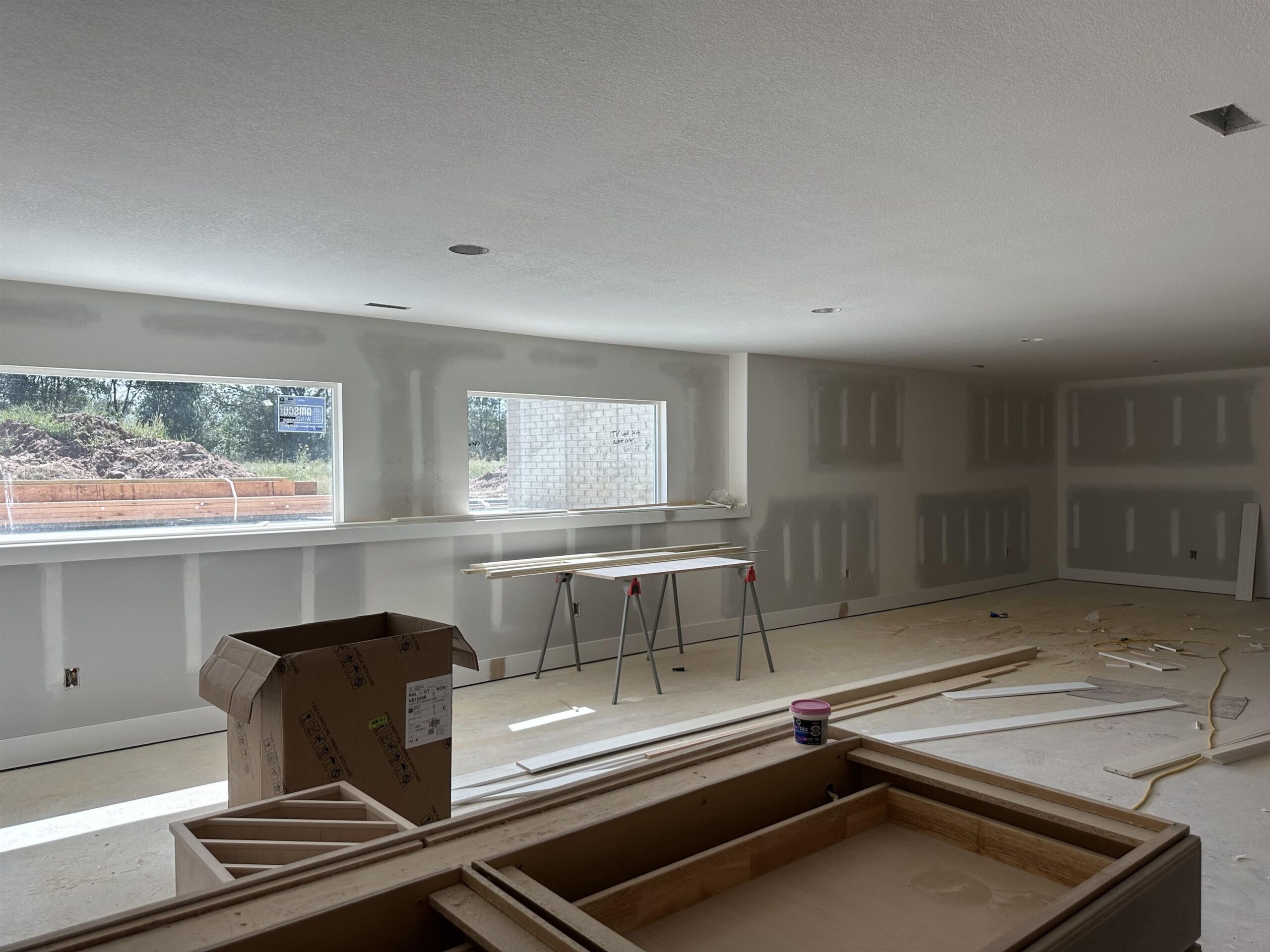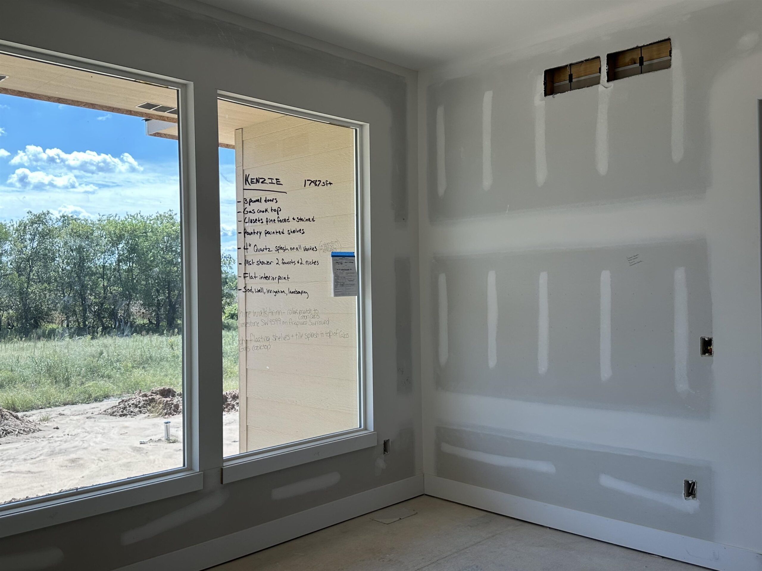 - Description: The “Kenzie” plan is back! Located on a lot that is actually larger than shown and backs to huge trees, its a very private lot. This home will be completely finished and move in ready. You’ll love the noteworthy tower front porch entry and large windows. Open floor plan offers beamed ceilings, large kitchen with floating shelves, side wine/coffee bar, and large pantry. Focal point slider opens out to raised covered concrete patio. Lots of storage in this home. Master retreat is a spa with wet room featuring large walk in shower and soaker tub, and spacious closet connects to laundry. This split bedroom plan houses 2 additional bedrooms on the other side of the home. Downstairs in finished basement you have an extremely large family/rec room with a wet bar that has a front seating island, and lots of room to spread out in comfort in the family/rec room! Bedrooms 4 and 5 are on one side with an additional bath that has sink separate from tub/shower, perfect for everyone getting ready at the same time. So much space and open living spaces, come tour today! This home is currently under construction! Includes well, sprinkler, sod, & landscaping. Information deemed reliable but not guaranteed and may change without notice. Room sizes may be estimated. Taxes are shown on vacant lot.Specials may not be entirely spread yet and are shown as estimates. There is a $250 mailbox key collected at closing. Home is currently under construction. Show all description