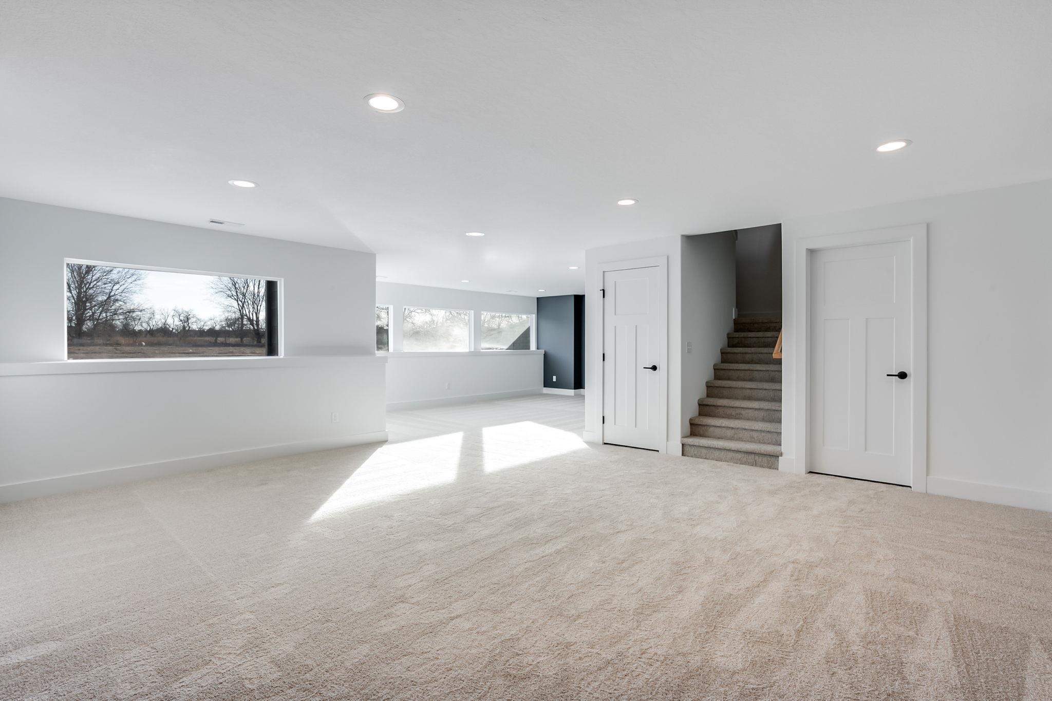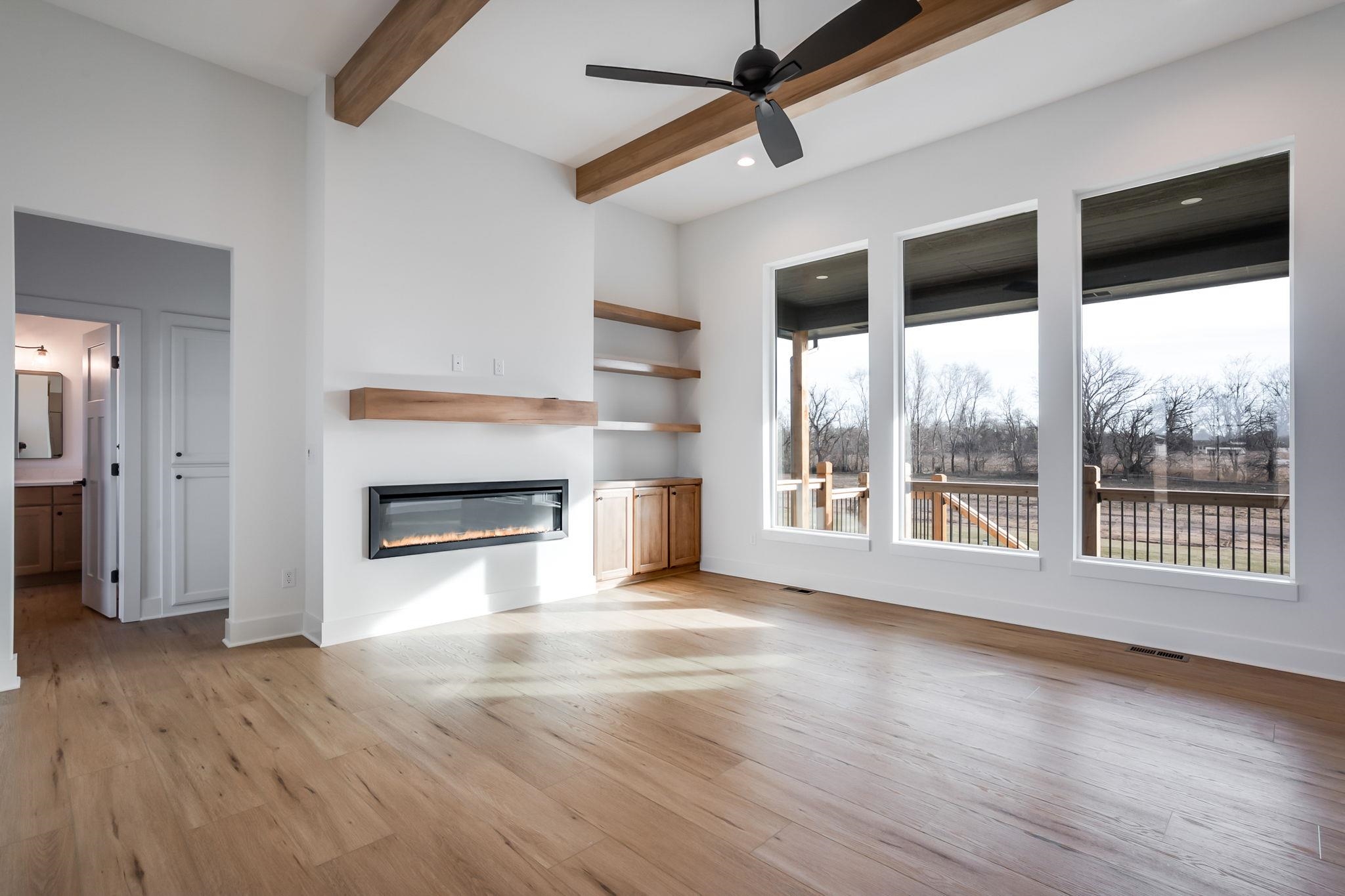 - Description: Style, function, and thoughtful design come together in the beautiful Brooks plan by M&M Construction. The living room impresses with its over 11-foot ceiling accented by maple wood beams and an electric fireplace as the focal point. The kitchen offers quartz countertops, a bright walk-in pantry with a window, built-in microwave, and plenty of shelving. A convenient drop zone with bench and shelves is tucked behind the kitchen, right by the stairs to the finished basement. The master suite connects to a separate laundry room with a folding table and built-in dresser in the closet. Enjoy a spa-like master bath featuring a separate tub and shower and tile flooring. LVP runs throughout the main living areas for a clean, easy to care for cohesive look. Downstairs, the finished basement includes a walk-up wet bar—perfect for entertaining. Outside, relax on the huge 18’x10’ covered composite deck overlooking a large lot that backs to mature trees. 8-foot garage doors complete this smart, stylish home designed for modern living. Information deemed reliable but not guaranteed and may change without notice. Room sizes may be estimated. Taxes are shown on vacant lot.Specials may not be entirely spread yet and are shown as estimates. There is a $250 mailbox key collected at closing. Show all description