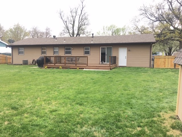 - Description: Come see this extremely darling home. Features 3 bedrooms. 1 & 1/2 bath, 1 car garage with extra cement by garage. Brand new deck. large lot with storage building. Home has refinished wood floors in the bedrooms, newly remodeled baths, new carpet, New doors on the front, back and patio. Recent plumbing and paint! Whirlpool tub in lovely tiled bath. This is a great house for the price . Move in ready. Don't wait or it will be gone. Show all description