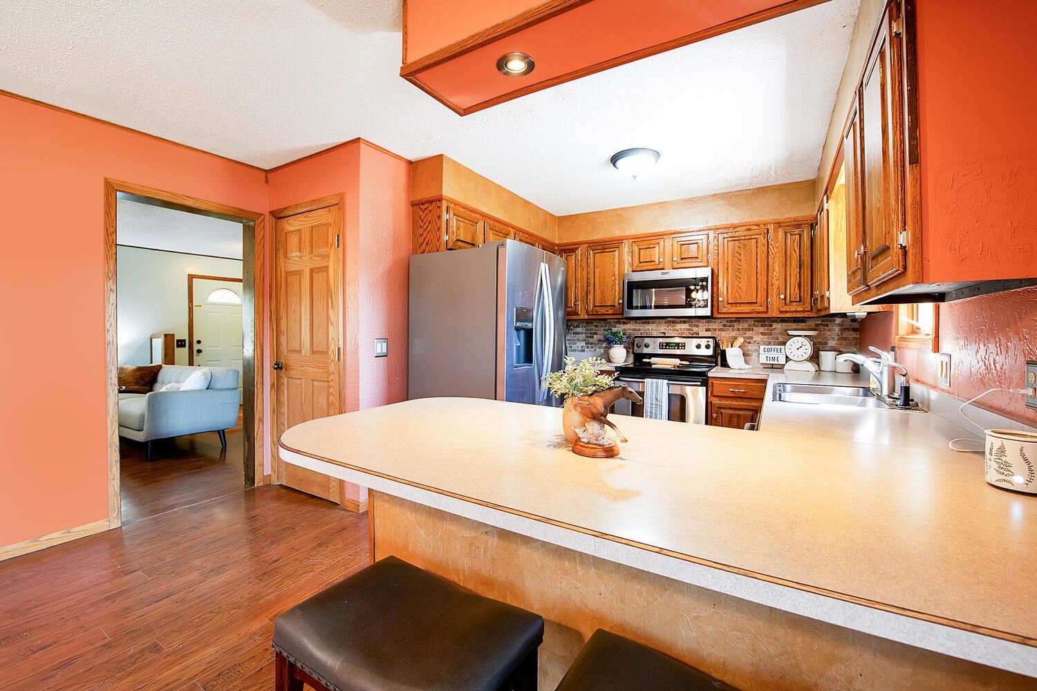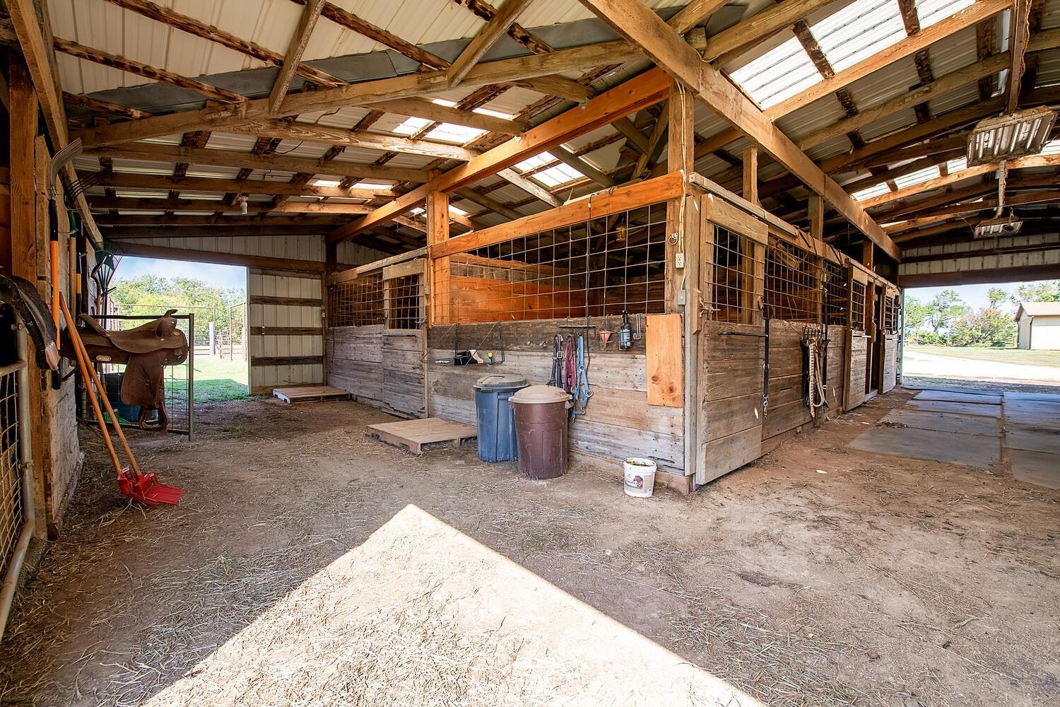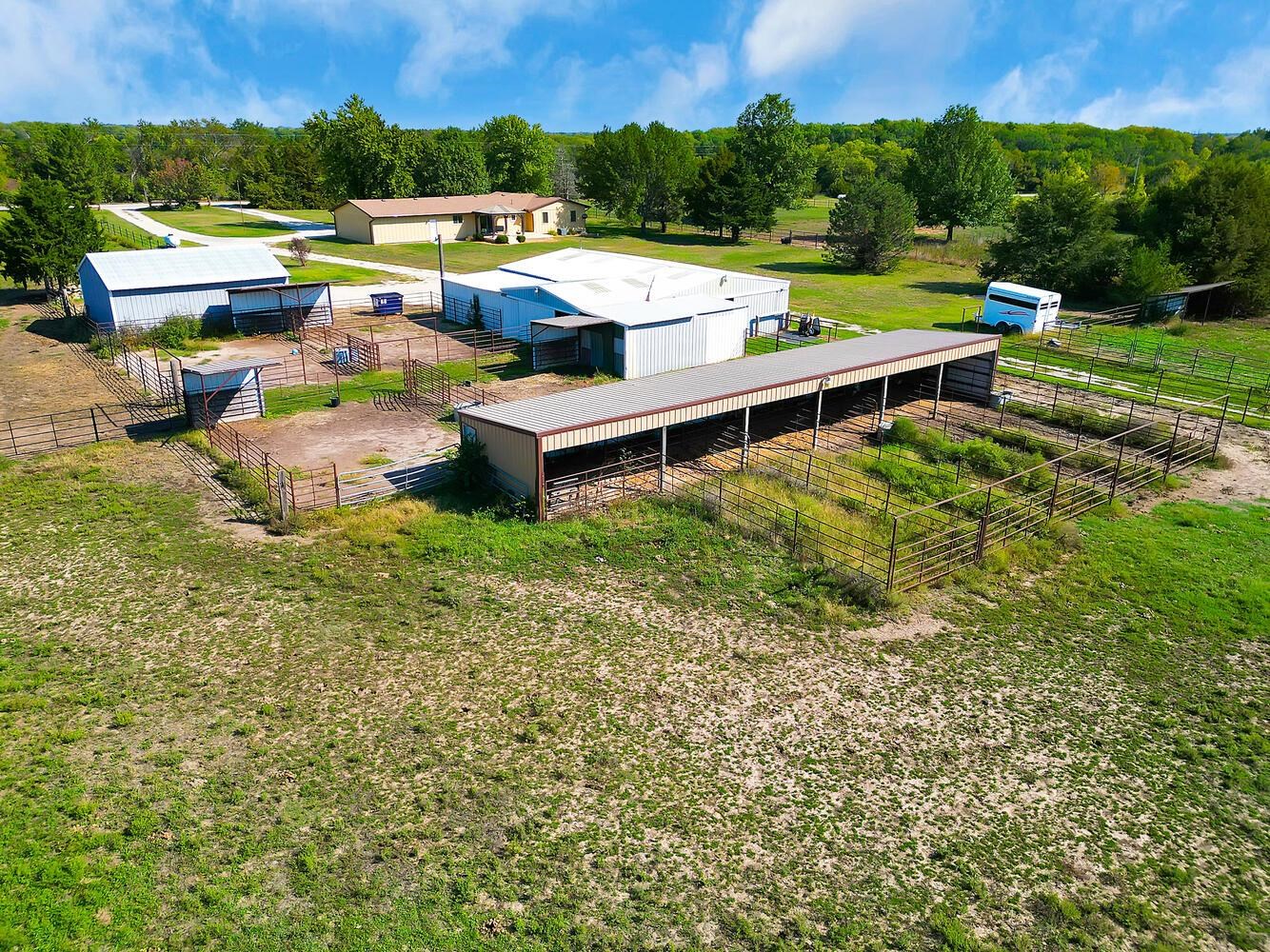 - Description: Working Mini Ranch on 7.2 acres**This 3 bedroom, 2 bath ranch features wood laminate flooring in the kitchen, dining and living room and luxury vinyl plank flooring in the bedrooms, office and laundry room. Stainless steel appliances in the kitchen including the refrigerator. The large deck is perfect for relaxing or entertaining. The roof and water heater are less than 3 years old. There is a 2 car attached garage and a 30 x 24 detached garage with electrical hook up for an RV. There is a 7 stall horse barn, 6 of the stalls are 10 x 12 and a foaling stall that is 12 x 24, a tack room, feed room and a hay storage room. Attached to this barn is an outdoor wash rack. Other facilities include a 5 stall shed row barn with runs and a 10 x 12 stall, 5 dry paddocks with shelter and 2 pastures that are 2 acres each with an option for a 3rd pasture. There is also a possibility for a large roping/riding arena. This is a perfect horse lovers property. This property is secluded with great access to Highway 254. Show all description